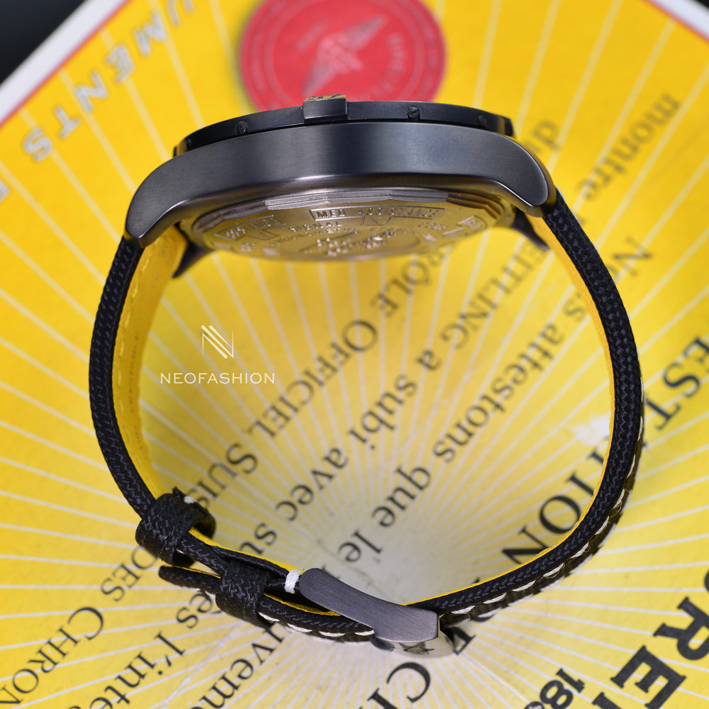 The large 48mm black steel case delivers exceptional wrist presence and rugged durability. Its matte black finish enhances the military aesthetic while reducing glare, making it both functional and visually striking. The oversized screw-down crown and chronograph pushers ensure easy operation even with gloves, a signature design element of the Avenger line.