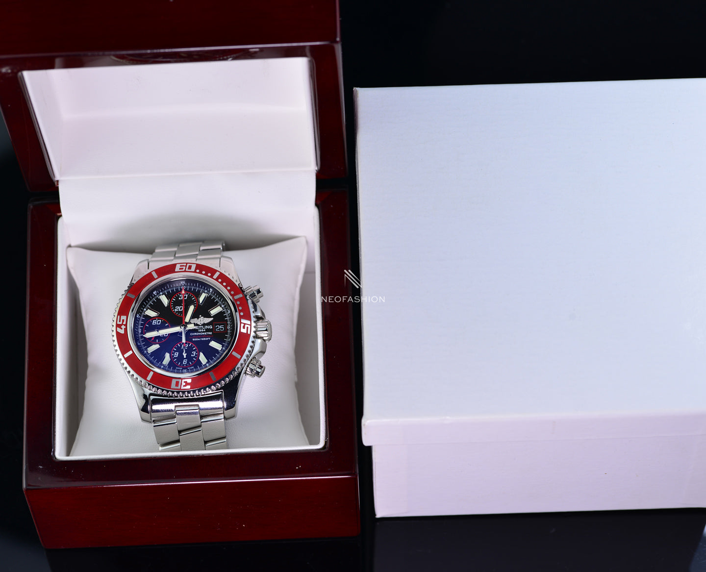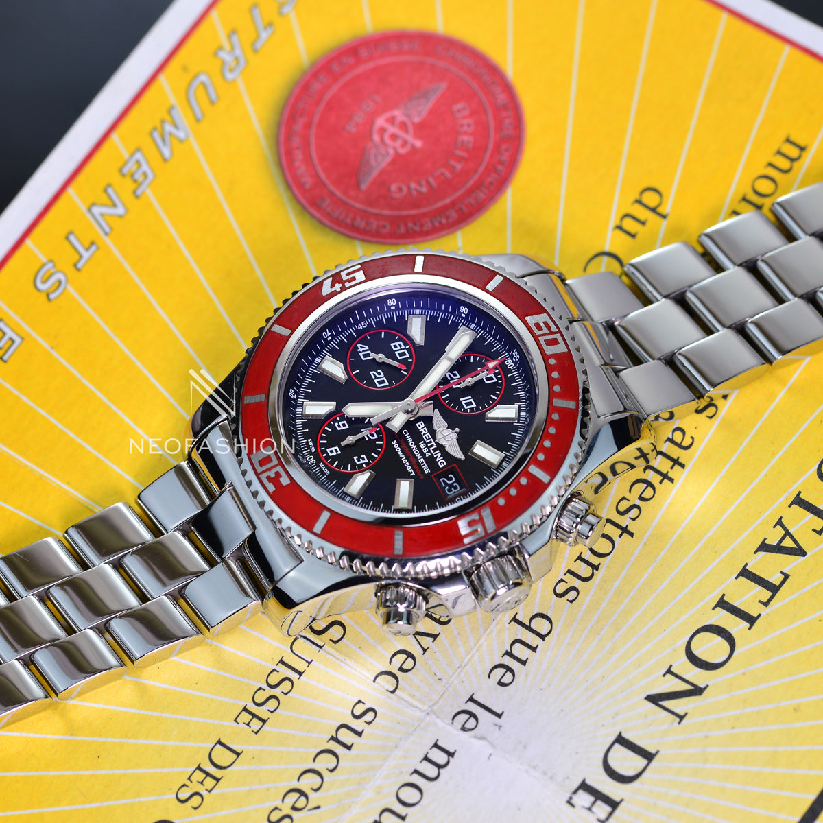 About Breitling Chronospace is one of the finest military tool watch examples in the Breitling Professional line which represents the rigid of tradition, originality and exclusive features, such as perpetual calendar, Alarm, Bi-rotational Bezel, Chronograph, Date,...