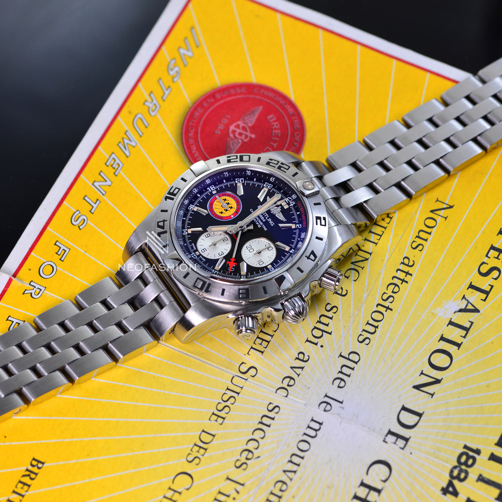 About Breitling Chronospace is one of the finest military tool watch examples in the Breitling Professional line which represents the rigid of tradition, originality and exclusive features, such as perpetual calendar, Alarm, Bi-rotational Bezel, Chronograph, Date,...